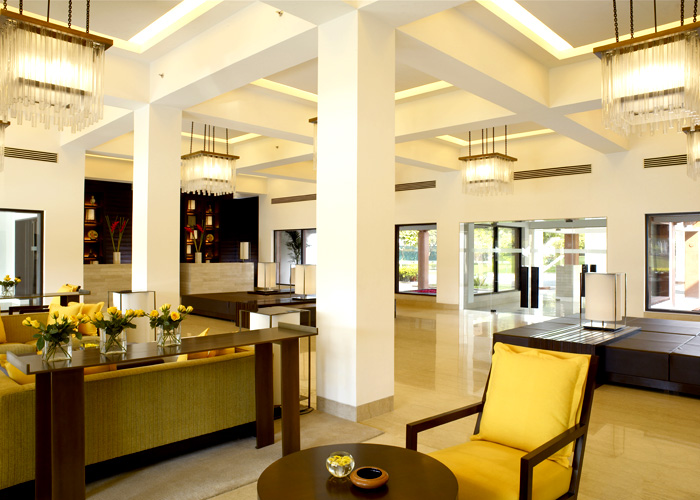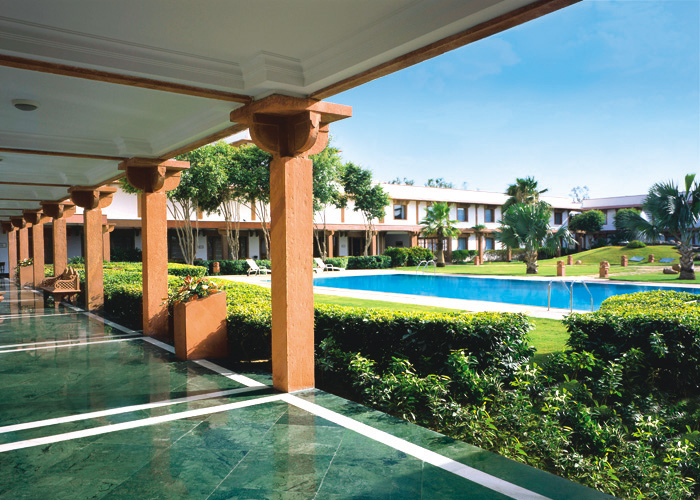 The Trident Oberoi Agra, set amidst beautiful gardens, fountains, landscaped central courtyards, and is built of red stone reminiscent of the Mughal era. The Hotel is literally, a stone's throw away from one of the new 7 Wonders of the World, the Taj Mahal. |
