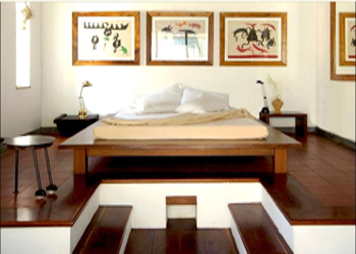 a relocated ancient wooden cottage, has two individual bedrooms with bath gardens, separated by the hall. The rooms are rented out individually.