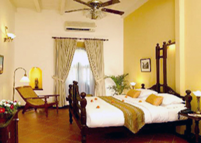 is an all air-conditioned suite with bed, dining, living & two bathrooms.