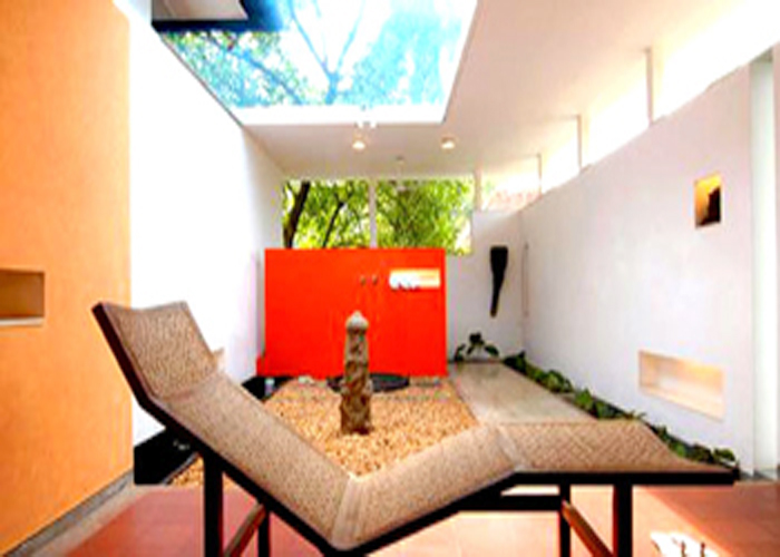 a relocated ancient wooden cottage, has two individual bedrooms with bath gardens, separated by the hall. The rooms are rented out individually.